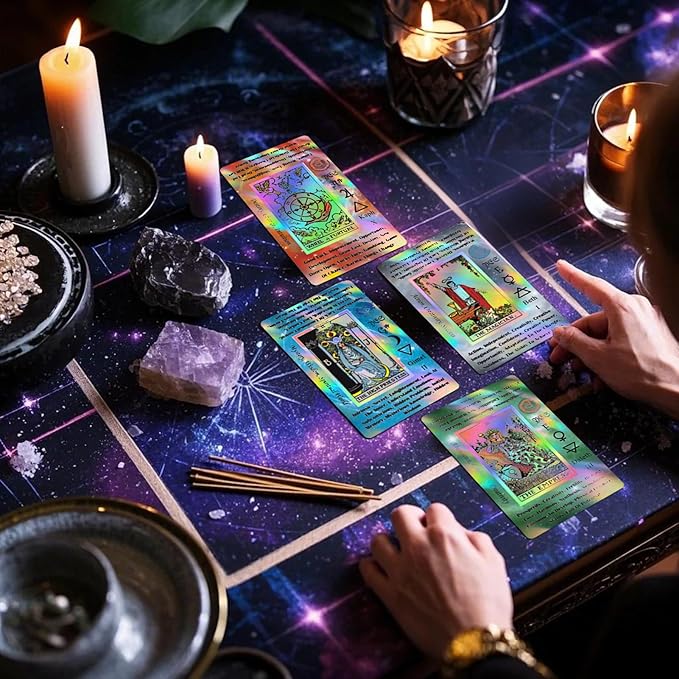 【ホログラフィックレーザー素材】通常の素材や普通の素材とは異なります。 このタロットは、高価なレーザー素材を使用して、カードの感触を高めながら、よりクールで認識しやすいホログラフィック効果を備えています。