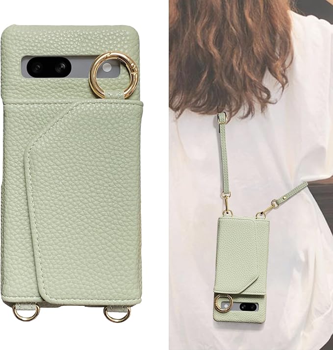 Google Pixel 7a ケース ショルダー カード収納 グーグルピクセル7a ケース 薄型 シンプル 韓国 おしゃれ Pixel 7a ケース 背面手帳型 ピクセル7a ケース 高級PUレザー 全面保護 耐衝撃 スタンド機能 ストラップ付き 肩掛け 斜め掛 首掛け ピーグリーン