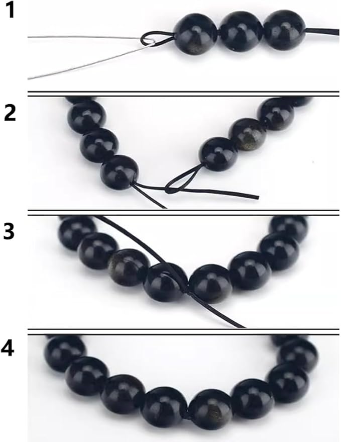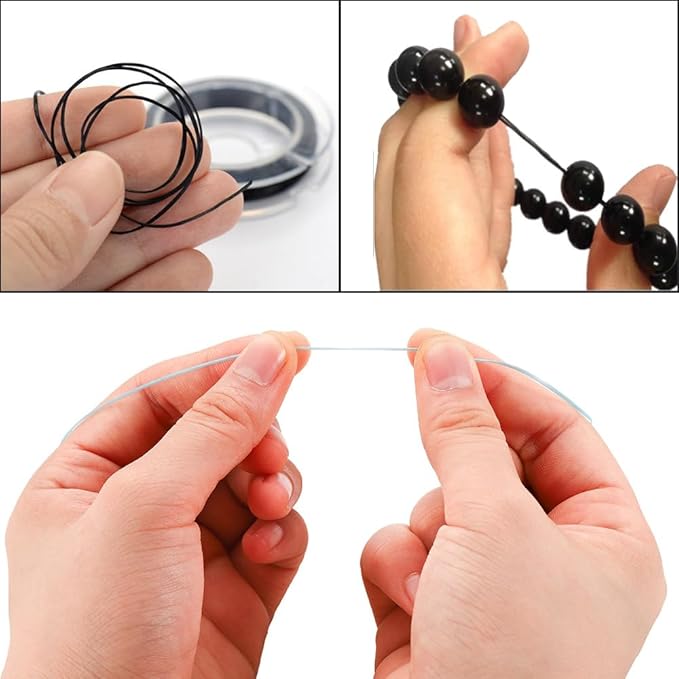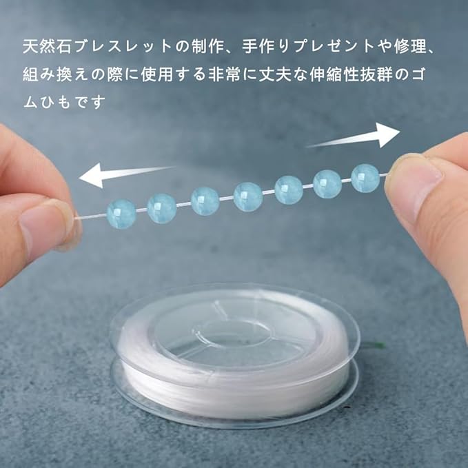 ビーズの色と同色系のゴムを使用することで、透明感のある素材は色合いが見違えるように鮮やかになります。