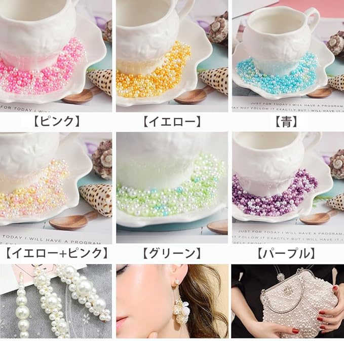 ✿セット内容:パール6色セット(穴無し )、カラーシリーズには、ピンク、ブルー、パープル、イエロー、イエロー+ファン、グリーンが含まれています。サイズ:2.5 mm ~ 5 mm(1パックあたり約12 g、合計約70 g程度、誤差がある場合がありますのでご了承ください)。