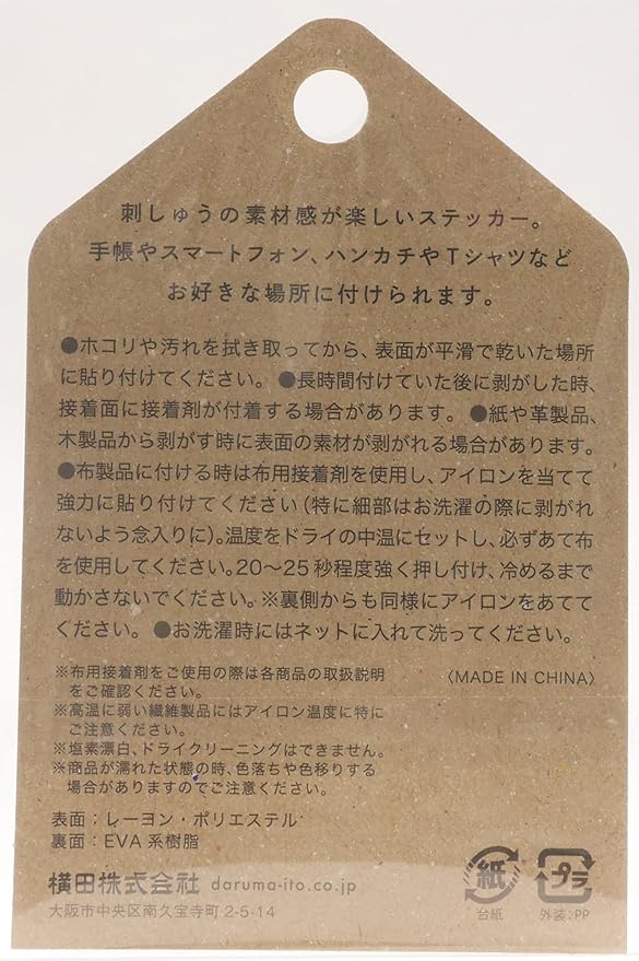 貼り付けタイプ※布に付ける場合は布用接着剤を使用してください。