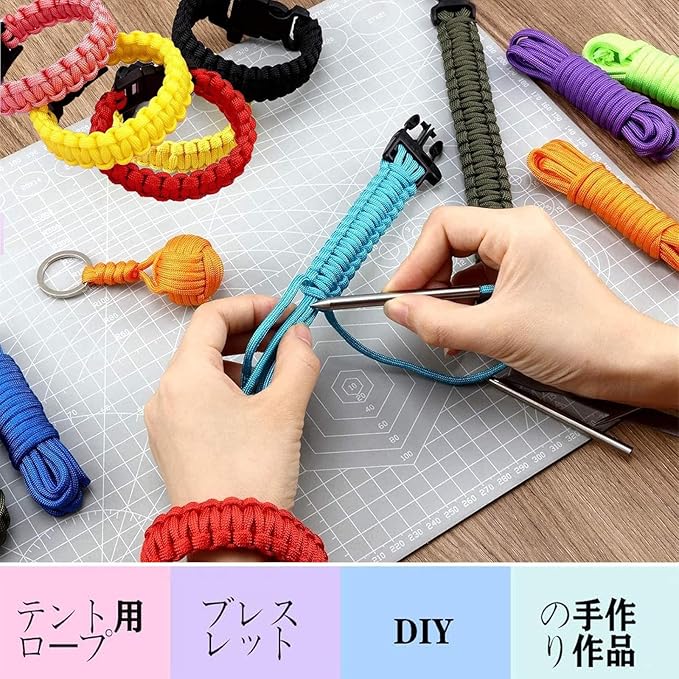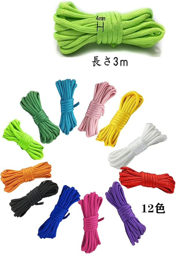 【パッケージ内容】セットには、パラコードは12色のカラーバリエーションがあり、長さは3m、直径は4mm、 十分なです。カラフルなセットはさまざまなニーズを満たすことができます。2つ以上の色を組み合わせて、おしゃれなブレスレットなどの工芸品を作ることができます。