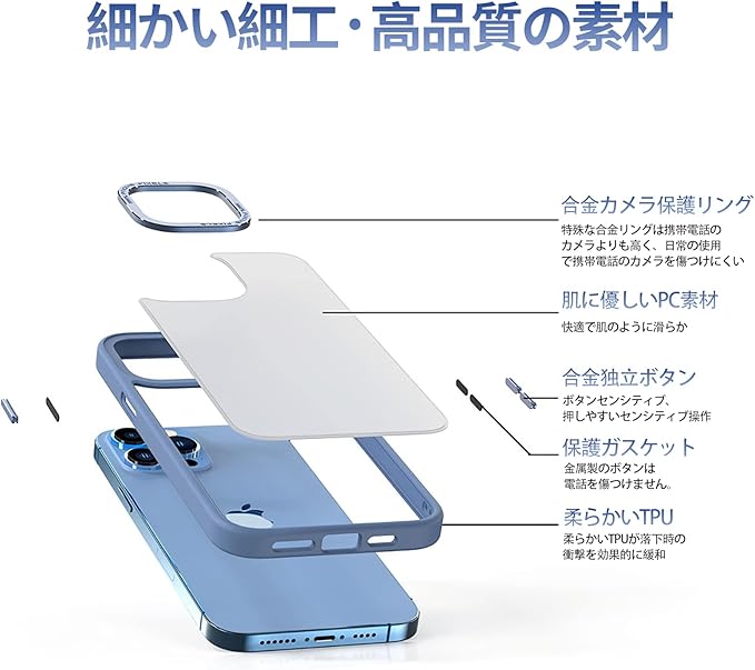 【優れる側面設計・合金ボタン】iPhone 14 ケース 側面はドイツ製TPU素材を採用、適度な弾力を持って、取り外し易くてベタつかずしっくり手に馴染み、持ち心地がすごく良い。合金ボタン部分に切り込みを入れて、とても押しやすい。合金カメラ保護フレームカメラの保護を強化。