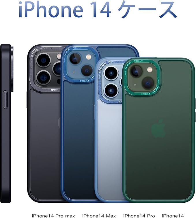 iPhone14 ケース マット 半透明 シンプル おしゃれ iPhone14ケース かわいい 指紋防止 耐衝撃 黄変防止 ワイヤレス充電対応 韓国 薄型 軽量 いphone14 ケース かわいい 背面PC ハードケース サイド (ネイビー) | oioioichan