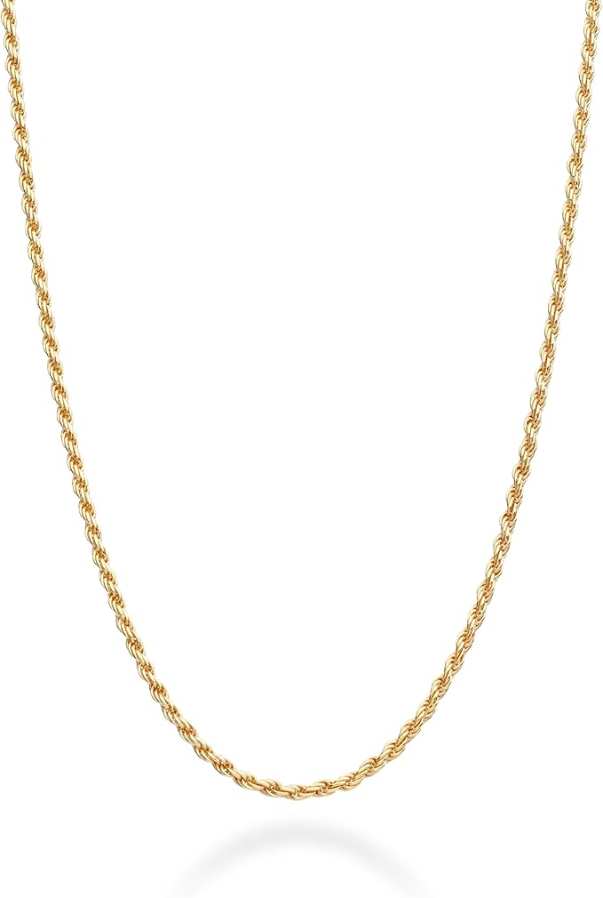 Miabella イタリアン925スターリングシルバー、18Kゴールドメッキ1.5mmダイヤモンドカットロープチェーンネックレス、レディース、メンズ、イタリア製。, Length 20 Inches (women's average length), スターリングシルバーに18Kゴールド。, 宝石なし