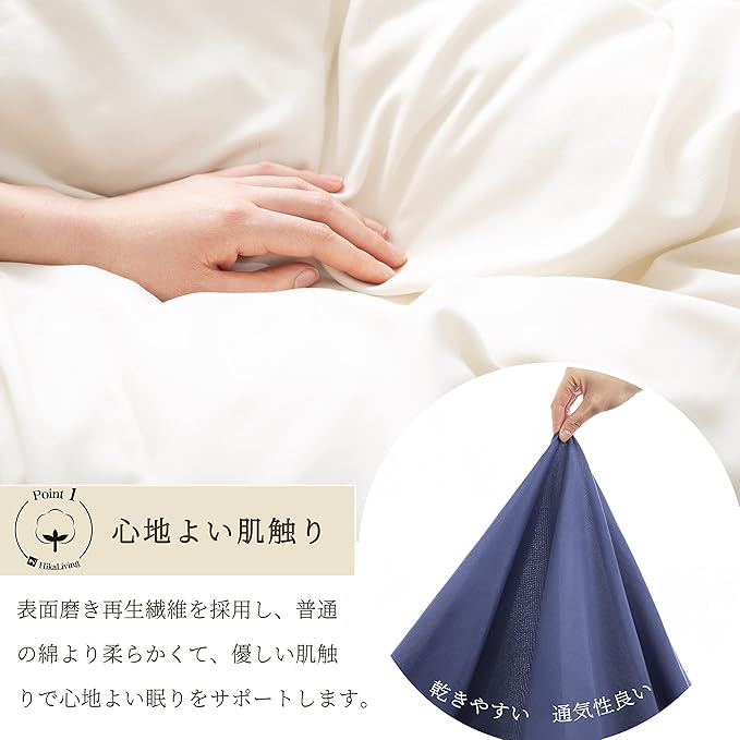 【滑らかな肌触り】表面磨き再生繊維を採用し、ピーチスキン加工で、普通の綿より柔らかくて、優しい肌触りで心地よい眠りをサポートします。