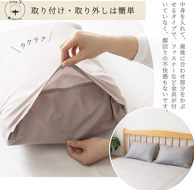 【商品仕様】サイズ:63 43㎝ 封筒・合わせ式。素材:ポリエステル100% 。枕カバーの取り付け・取り外しは簡単です。