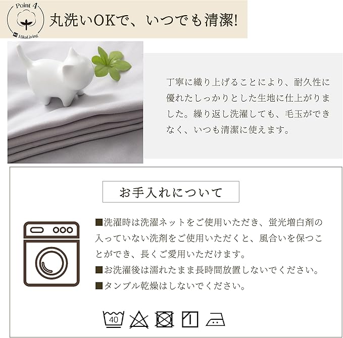 【毛玉できない】丁寧に織り上げることにより、耐久性に優れたしっかりとした生地に仕上がりました。繰り返し洗濯しても、毛玉ができないです。
