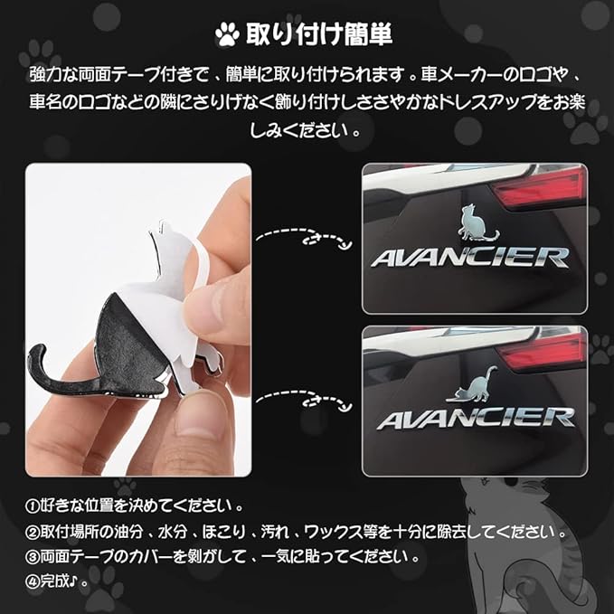 【取り付け簡単】両面テープ付きで、簡単に取り付けられます。車メーカーのロゴや、車名のロゴなどの隣にさりげなく飾り付けしささやかなドレスアップをお楽しみください。☆取付場所の油分、水分、ほこり、汚れ、ワックス等を十分に除去して、平らな面に貼り付けてください。天候の良い日に貼り付けを行ってください。