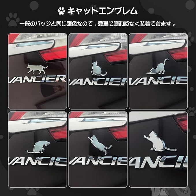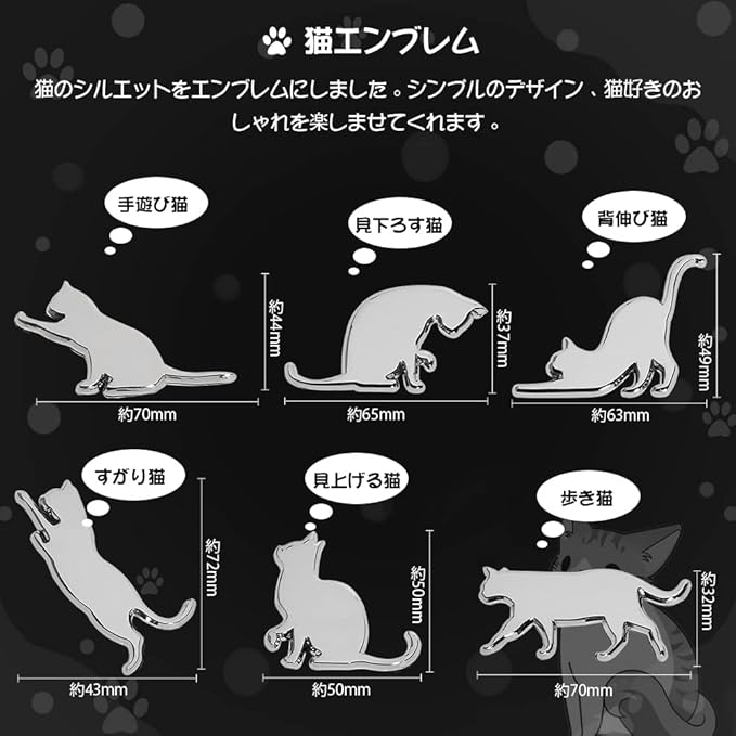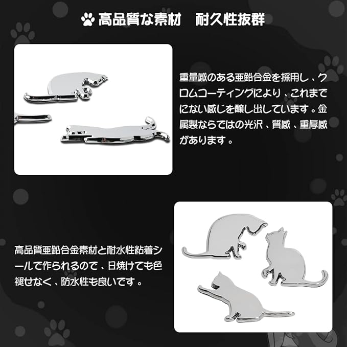 FUTWOD 車 ステッカー 猫 エンブレム ねこ ネコ かわいい 面白い 3Dステッカー 防水 耐候 キャット カーステッカー アクセサリー デカール シルバー おしゃれ 車用 バイク スーツケース 飾り キズ隠し 背伸び猫 | oioioichan