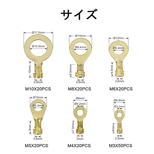 YFFSFDC 丸型端子セット 150個セット M3 M4 M5 M6 M8 M10キットコネクタキット 真鍮 リングケーブルラグ 丸型端子 銅ラグ 圧着ケーブル ワイヤ端子 | oioioichan