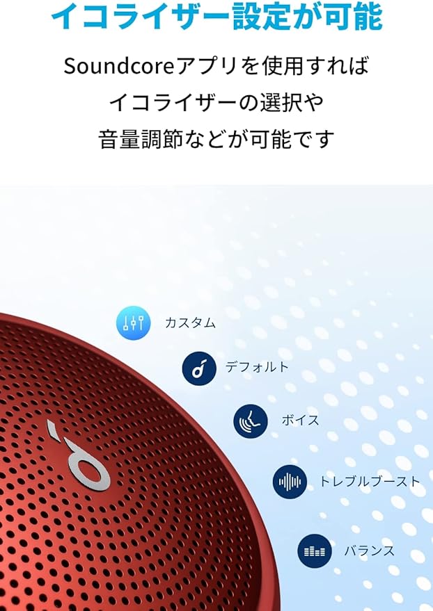 アプリに対応:Soundcore Mini 2では非対応だったSoundcoreアプリに対応。アプリを使用すれば、イコライザーのカスタマイズや音量調節、電源オフの操作などが可能です。