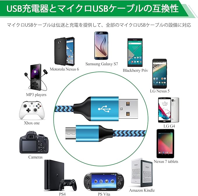 ♬ 1.83M Micro USB ケーブル付き: 充電ゴートは急速充電や高速データのUSB2.0規格の480Mbps伝送スピードで充電が早くなります、過充電防止機能付きで、もっと本体のバッデリ保護します。