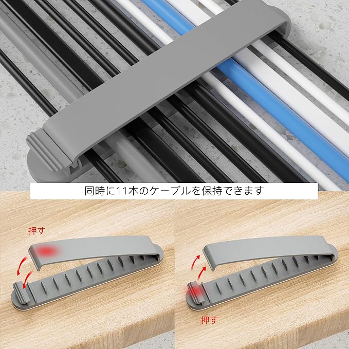 PZOZ 3個入り ケーブルホルダー PC製 ケーブルクリップ 11穴 充電ケーブル 固定 USB コードクリップ 落下防止 ケーブル クリップ 配線 収納用 貼り付けタイプ (グレー) | oioioichan