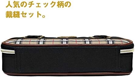 かわいいハートのエンブレムと人気のチェック柄の裁縫バッグ。