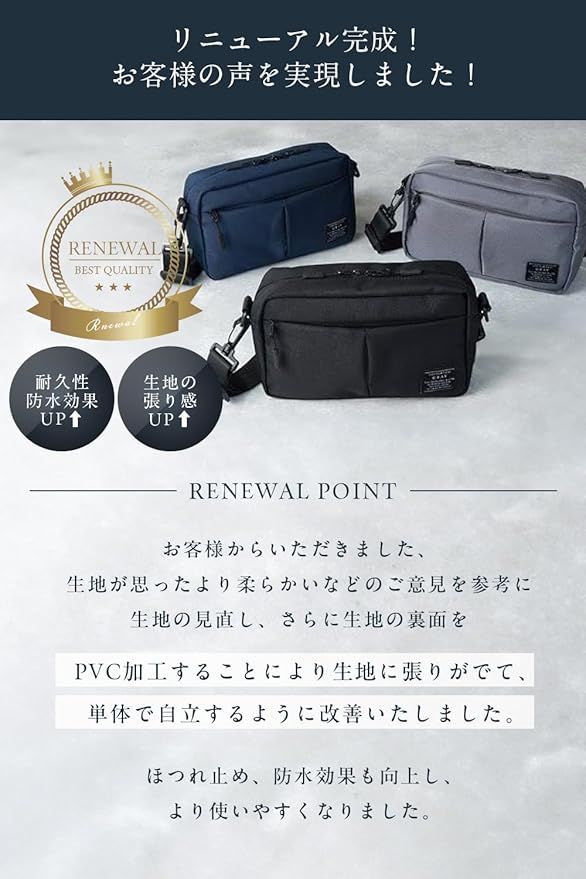 【高い撥水性と強靭で耐久性の高いナイロン素材採用】 撥水性が高く、汚れに強い高級ナイロン生地を採用。さらに程よい光沢感が高級感をアップ。