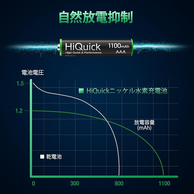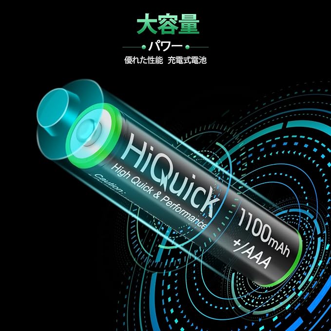 【HiQuick単4仕様】 ニッケル水素充電池 電圧:1.2V 容量:1100mAh 16個パック 取り扱い説明書