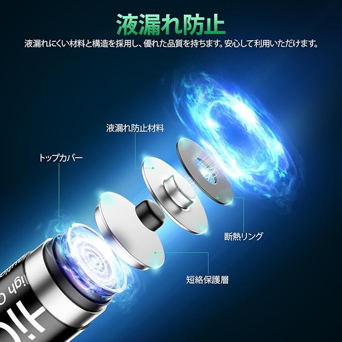 【液漏れなし】良い密閉型により、日常の電気製品から電動工具に損害がありません。丈夫な密封スチールで過圧の爆発から電池を保護します。単4ニッケル水素電池はHg / Cd / Pbなどの有毒な重金属要素を含んでいないので、環境には何の汚染もありません。