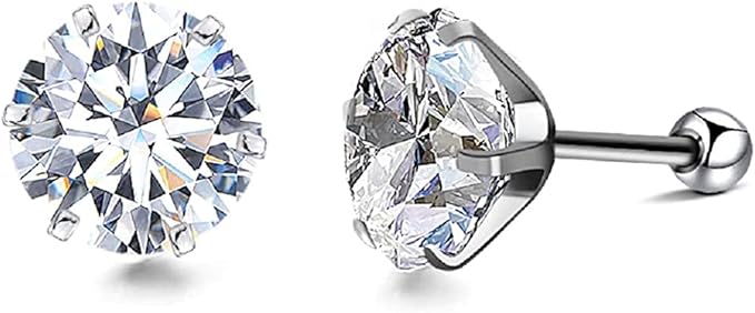 Metal: サージカルステンレス316L(アレルギー防止製用ステンレス)、Stone: ダイヤモンドCZ、Cuts: ラウンドブリリアントカット、Carats: 4トータルキャラット(各約10ミリ径)、Weight: 約2gx2