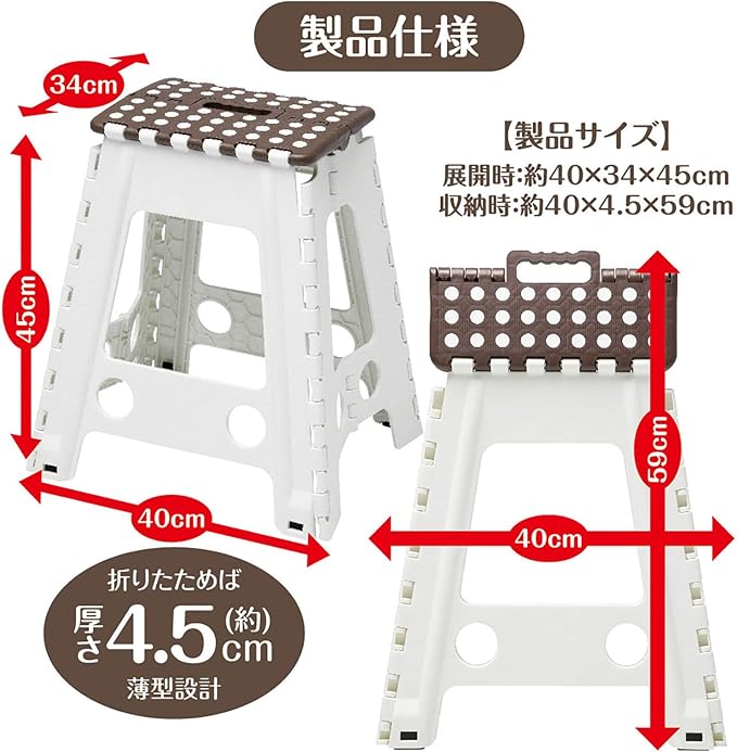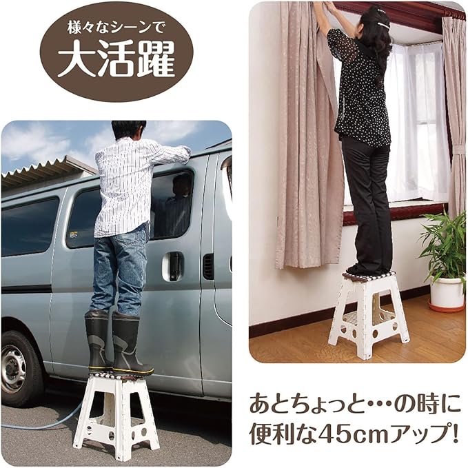 トレードワン(TRADE ONE) 踏み台 折りたたみ椅子 ステップ 耐荷重100kg 高さ45 幅40 奥行34cm 室内・屋外 チェア アウトドア キャンプ 洗車 セノ・ビー スーパーのっぽ君 ホワイト 10163 | oioioichan