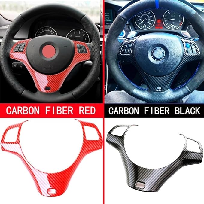 車のステアリングホイールパネル装飾カバートリムモールディングステッカー、 用、1 3 シリーズ E87 E90 E92 E93 2005-2012(CARBON FIBER red) | oioioichan