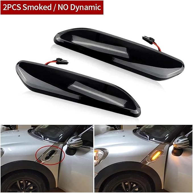 ウインカー のためにクーパー R60 R61 同胞 ペースマン ダイナミックスクロール点滅 LED サイドマーカーインジケータランプターンシグナルフェンダーライト(Smoked,NO Dynamic) | oioioichan