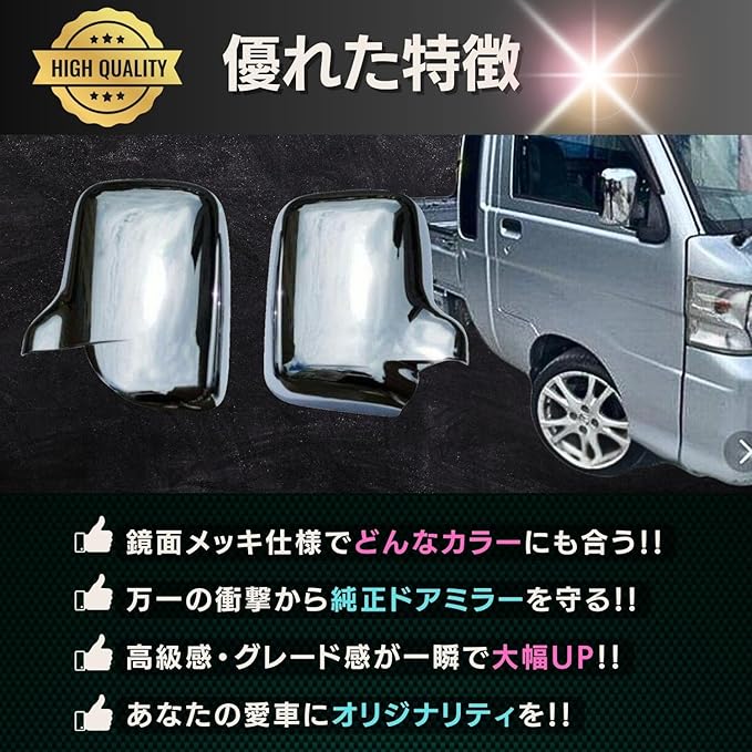 Pararect ドアミラー サイドミラー カバー S200P S210P S100 S110 S120 S130 クロム メッキ ハイゼット トラック 軽トラ ピクシス サンバー 左右セット 貼るだけ かんたん装着 | oioioichan