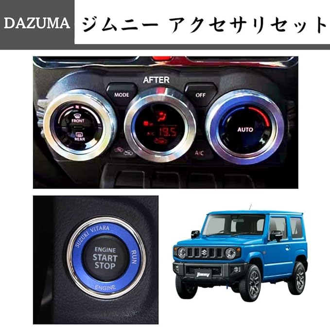 【商品特徴】スズキ 新型ジムニー JB64型 ジムニーシエラJB74型 専用のエアコンダイヤルカバー・エンジンスタートリングのセットです。アクセサリーセットでさらに車内の装飾をグレードアップすることができます。