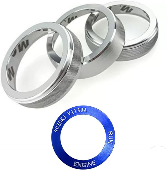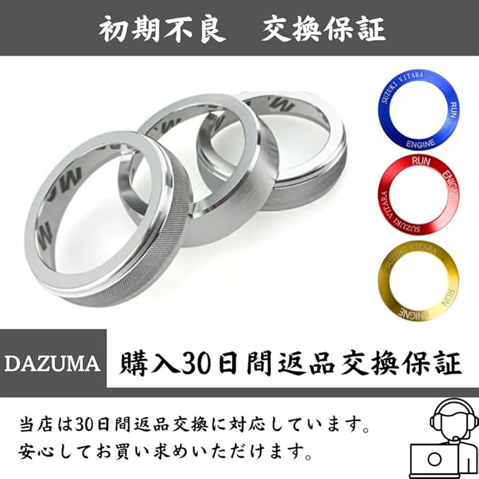 【商品仕様】●エアコンダイヤルカバー サイズ 左右:直径5.8cm 1.5cm 中央:直径6.2cm 1.4cm 重量:37g 材質:アルミ ●エンジンスタートリング サイズ:外径3.8cm 内径2.7cm 重量:2g 材質:アルミ