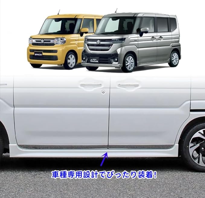 OKAYOHINN スズキ 新型 スペーシア スペーシア カスタム MK54S MK94S 専用 サイド ドア モール ドアトリム ガーニッシュ サイドスカート サイドドア ガーニッシュ モール サイドガーニッシュ アクセサリー 外装パーツ ABS樹脂製 4PCS Spacia Spacia Custom 2023年11月~【鏡面仕上げ】SPF-CSY | oioioichan