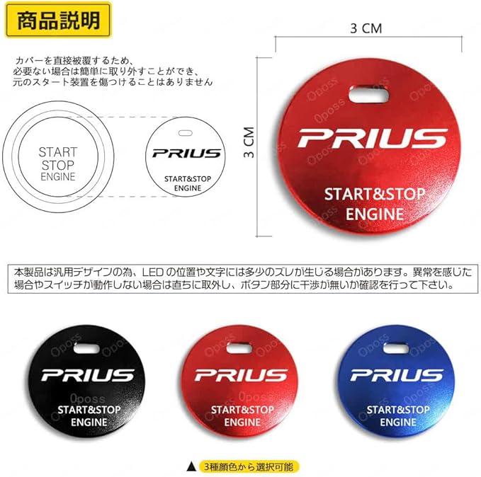 【適合車種】プリウス 80系 50系 40系 30系 20系 プリウスα nz511 zvw30系 すべての年式とすべてのモデルに適合,汎用エンジンスタート イグニッション スイッチ プッシュ ボタン アルミ カバー,ご購入前にサイズを確認してください