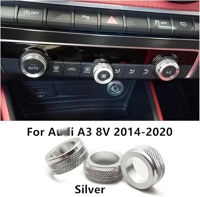 エアコンスイッチノブカバー カー に適合する アウディ A3 8V 2014-2020 カーセンターコンソール空調スイッチノブ風調整可能なボタン色の装飾リングアクセサリー(Color:Silver) | oioioichan