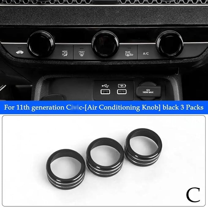 アルミエアコンスイッチカバー に適合する ホンダ用 に適合する シビック 11th 世代 2022 車の AC 空調ノブカバートリムセンターコンソール音量出口ベントノブカバー(Color:3pcs black) | oioioichan