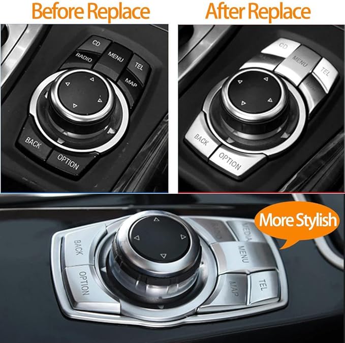 車のボタンスイッチカバー for BMW E60 E61 E63 E64 E81 E82 E87 E88 E89 E90 E92 E70 E71、マルチメディアノブメニューボタンの交換用 | oioioichan