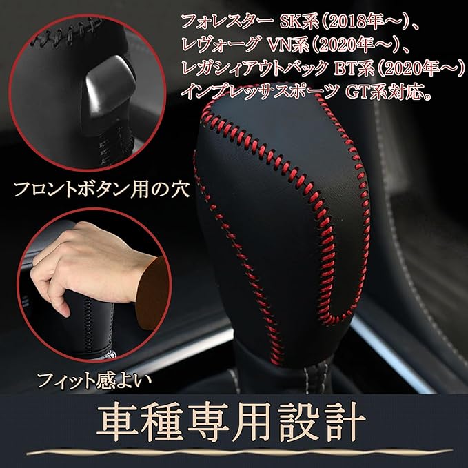 【フィット感よい】❶車種専用設計: フォレスター SK系(2018年~)、レヴォーグ VN系(2020年~)、レガシィアウトバック BT系(2020年~)、インプレッサスポーツ GT系対応。❷フィット感:シフトノブカバーは車種専用設計ですのでフィット感は抜群です。十分に包まれていて車の高級感が増す。シフトノブの使用に影響を与える心配もありません。