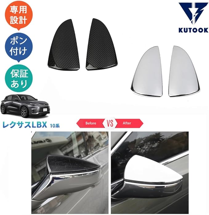 【商品情報】 商品数量:2P カラー:メッキ仕上げ/カーボン調 素材:ABS 取付方法:両面テープ取付