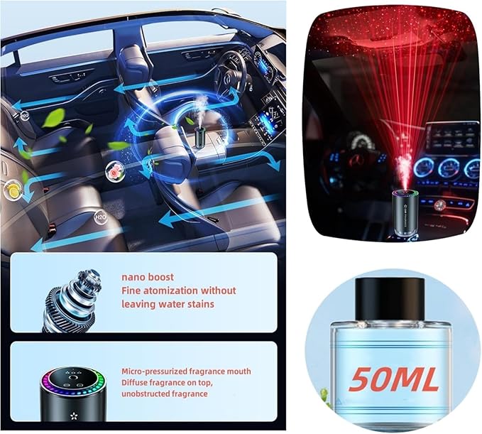 斬新な特徴: インテリジェントな車載AIスマートセンシングは車と一緒に始まり、スマートカーエアフレッシュナーはナノスケールの霧化され、香水は長持ちし、香りは1秒で放出できます。 音を認識でき、車に搭載された星空のアンビエントライトも搭載できます。 車の振動を感知し、自動的にアロマセラピーマシンをウェイクアップし、車内の誰もスリープモードに入ることはありません。