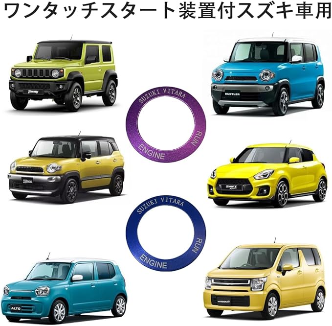 スズキ車専用ワンタッチスタートトリムリング - ジムニーJB64、スイフトスポーツZC33Sに最適なカスタムパーツ&アクセサリー エンジンスタートボタン飾りリング(1個セット) (パープル) | oioioichan