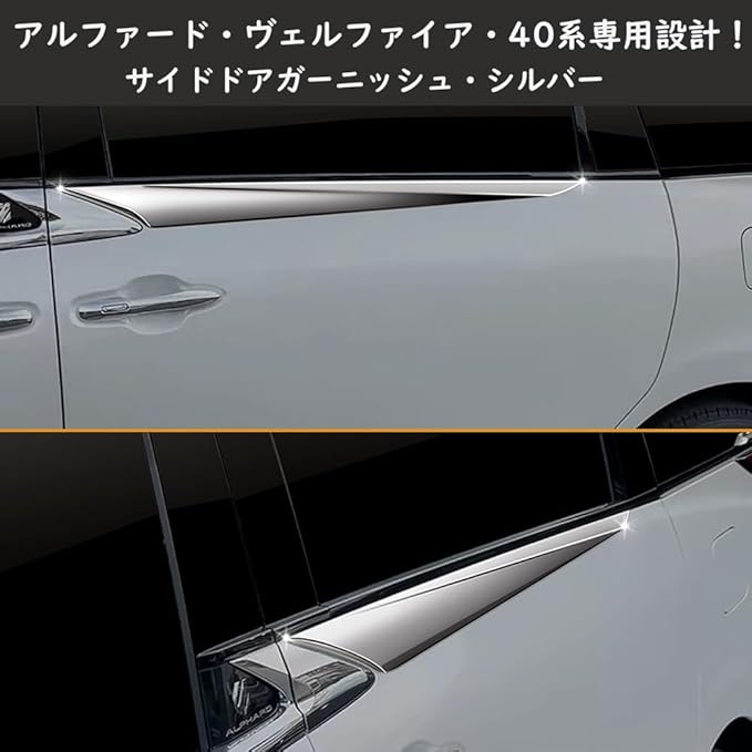 【セット内容】:新型アルファード/ヴェルファイア 40系 対応 サイドドア&リアウィンドウガーニッシュ(外装4p)