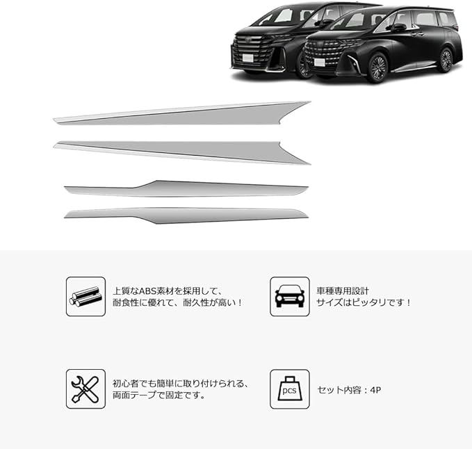 TARCELL アルファード 40系 ヴェルファイア 40系 サイドドアガーニッシュ リアウィンドウガーニッシュ リアウィンドウガラス ガーニッシュ ウィンドウトリム ABS制 車種専用設計 メッキパーツ カスタム パーツ エアロパーツ 4P | oioioichan