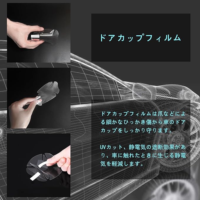 ✅【キズ防止】高品質のPE材料を使用し、爪などによる細かなひっかき傷から車のドアハンドルとドアカップを守ります。