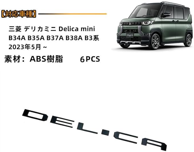 MEKOMEKO 三菱 デリカミニ B3系 専用 フロントのための 3Dメタルハイブリッド車のステッカーエンブレムのロゴ DELICA エンブレム ABS樹脂製 6PCS Delica mini【ピアノブラック】MIN-QZMB | oioioichan