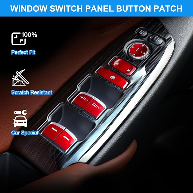 BoxCheer ウィンドウリフトパネルボタンフレームカバー 10個 ホンダ アコード 2023 2022 2021 2020 2019 2018用 アルミニウム合金 車 ドア アームレストボタン キャップ 自動ボタン トリムアクセサリー - レッド | oioioichan
