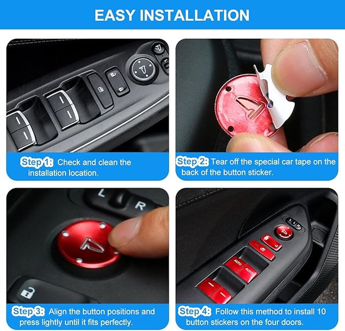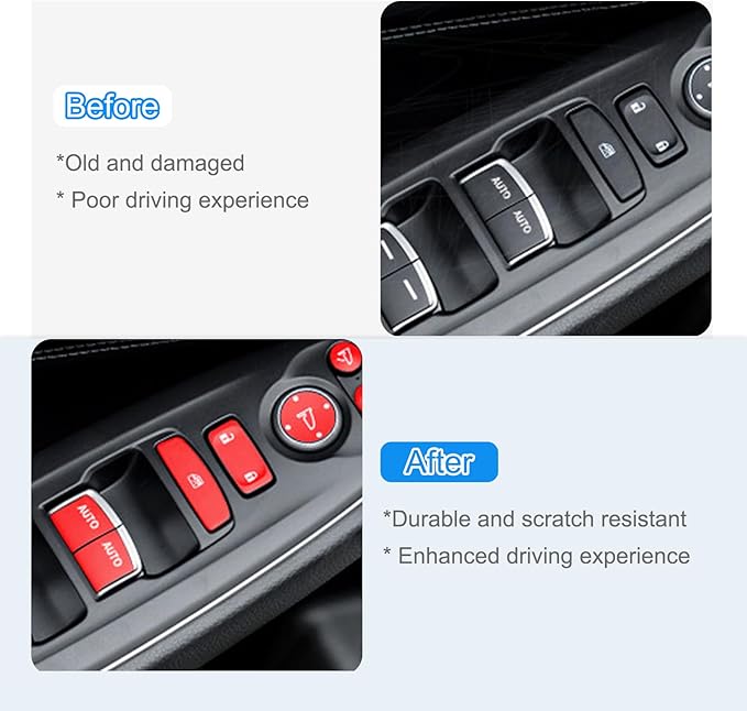 【機能】この車のウィンドウスイッチボタン装飾は、傷、塗装の欠け、汚れから新しい車を効果的に保護します。 純正車の傷をカバーし、車内を新しい外観にすることができます。