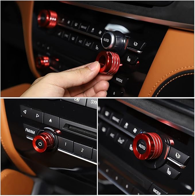 ブパネルトリムカバー 3 個車のボリューム空調ノブオーディオコントロールボタンノブリングカバートリム X5 X6 E70 E71 E72 2008-2011 2012 2013 ガーニッシュ内装 (色 : 赤) | oioioichan