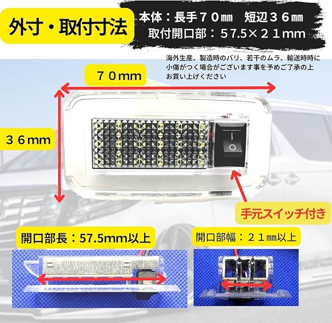 【サイズ】外形70㎜ 36㎜ 取付開口部最小約57.5㎜ 約21mm カプラ付きでDC12Ⅴトヨタ車汎用LEDライトです。※寸法、カプラ部等ご確認の上ご購入くださいませ。