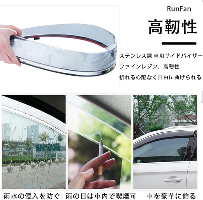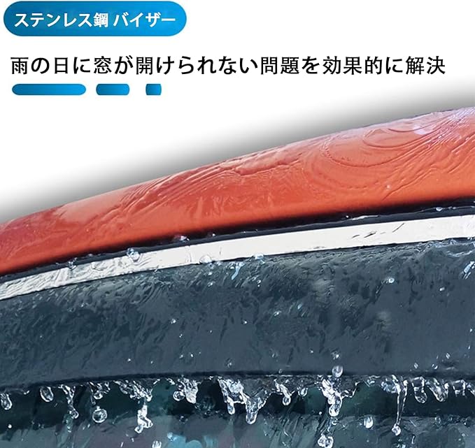 【素材】- ドアバイザー サイドバイザー テンレスブライトストリップ+PC 素材、で薄くて丈夫な商品になっております。耐候性、耐衝撃性に優れています。敢えて真っ黒にはせずに、透明感を残したスモークカラーは スタイリッシュな高級感を演出します。
