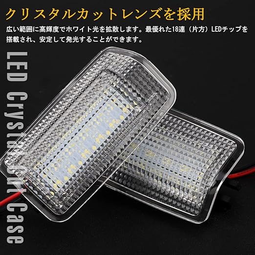 【高輝度LEDチップ搭載】車用ドアランプは最優れた18連(片方)LEDチップを搭載され、安定して発光することができます。輝度のアップグレードを実現しています。クリスタルカットレンズを搭載し、光源のカバー範囲を広くします。夜に雨が降りる際に足元が確認でき、水なんて溜まりを避けられます。ドアが開いているのが後ろから来る車に知らせることができます。