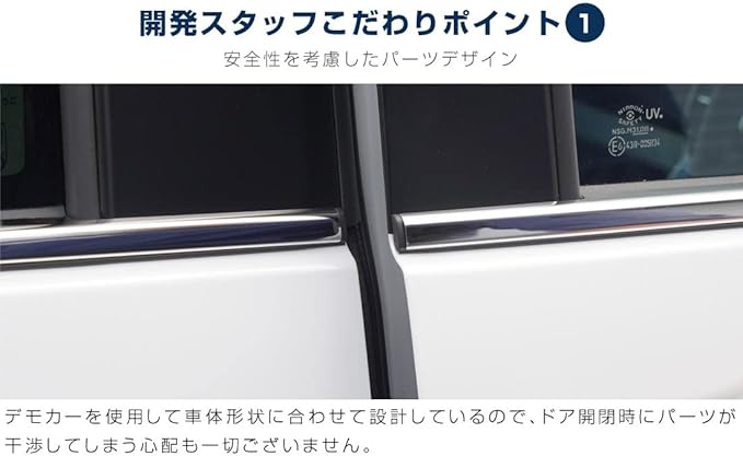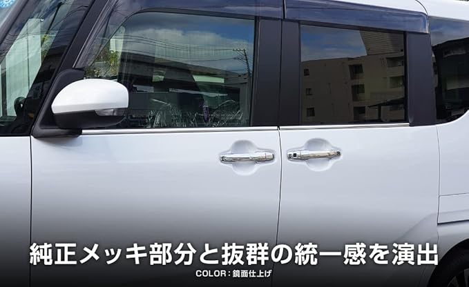 新型タント専用のサイドウィンドウ下部に装着するドレスアップパーツです。 シンプルなサイドビューにシルバーのラインをプラスすることでワンランク上の高級感を演出。 純正でドアハンドルに装着済みのメッキとのカラー相性も抜群で統一感のあるドレスアップが楽しめます。