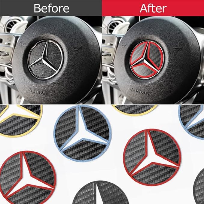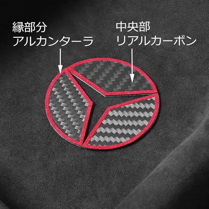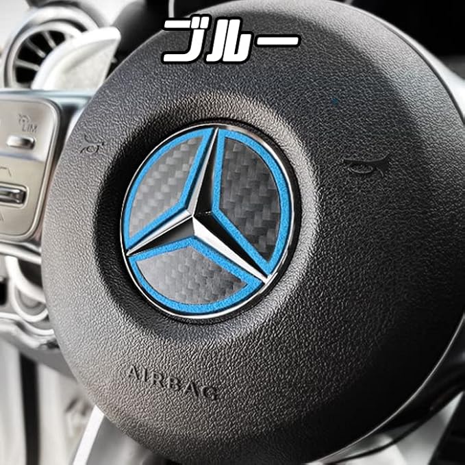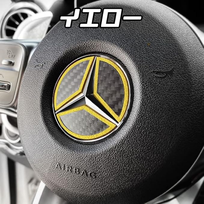ベンツ車用 ステアリング エンブレム カーボン アルカンターラ Aタイプ イエロー ステッカー W205 W206 W177 W247 W213 W222 W223 W463 W447 C118 X118 H247 X247 などに | oioioichan